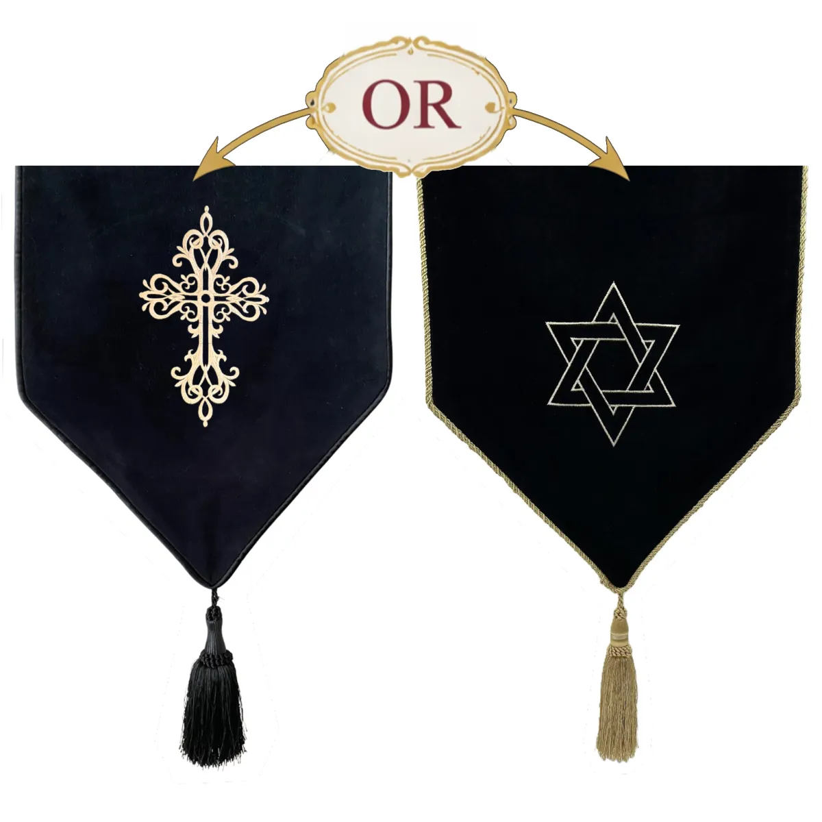 Each Memorial Casket Drape is constructed with rich colors, fine fabrics and may include meaningful sentiments. Our special patented "non-slip" design keeps it right where it belongs on the casket.
